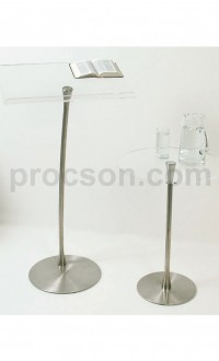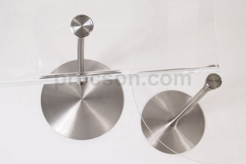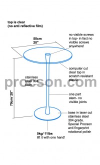 The base and stem are radial brushed stainless steel and the top is clear acrylic. Like the Arc2 lectern, this table has been refined and developed to be lighter than ever, while staying stable and strong. It can be used for a water glass, jug, laptop computer and other resources. It is easily carried with one hand. Assembly required, tool provided.Proudly Australian made.